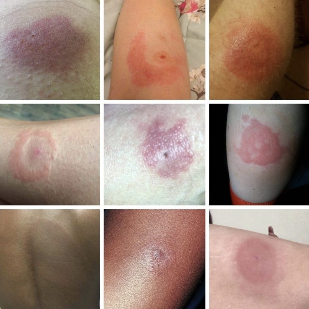 Izpuščaj po navadi ne boli in ne srbi, vendar je že dejstvo, da se na hitro začne širiti za človeka alarm, da čimprej poišče zdravniško pomoč. Drugi simptomi so tudi povišana telesna temperatura, tresenje, glavobol, utrujenost, bolečine v mišicah in sklepih ter otekle bezgavke.
