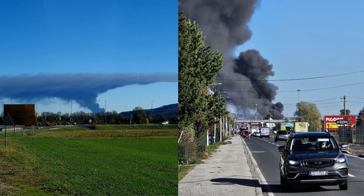 Blizu slovensko-hrvaške meje se popoldne vali gost dim, ki sega vse do Slovenije. Po govoricah naj bi na hrvaški strani zagorelo skladišče.
