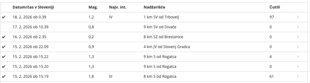 Več manjših potresov v zadnjih dneh