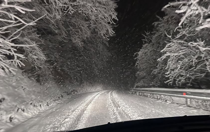Sneži tudi na Dolenjskem, tako je zgledala pot čez Gorjance -Vahta.Pluga pa ni nikjer, je zapisal uporabnik na Facebooku.