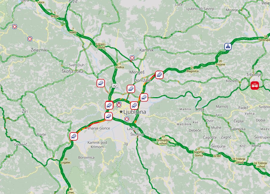 Voznike danes po Sloveniji čakajo številne prometne ovire. Med pomembnejšimi dogodki je dolgotrajna zapora ceste Trbovlje – Hrastnik, hkrati pa promet ponekod dodatno otežujejo jutranja konica, okvare vozil in vremenske razmere.